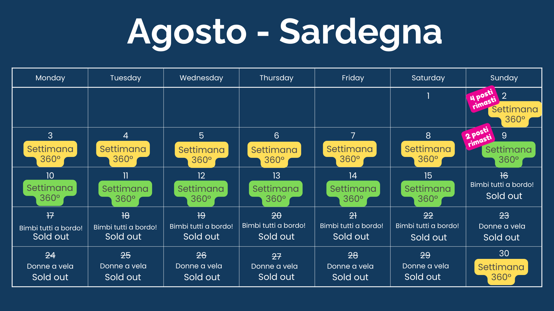Dal 23 al 29 Agosto 2026