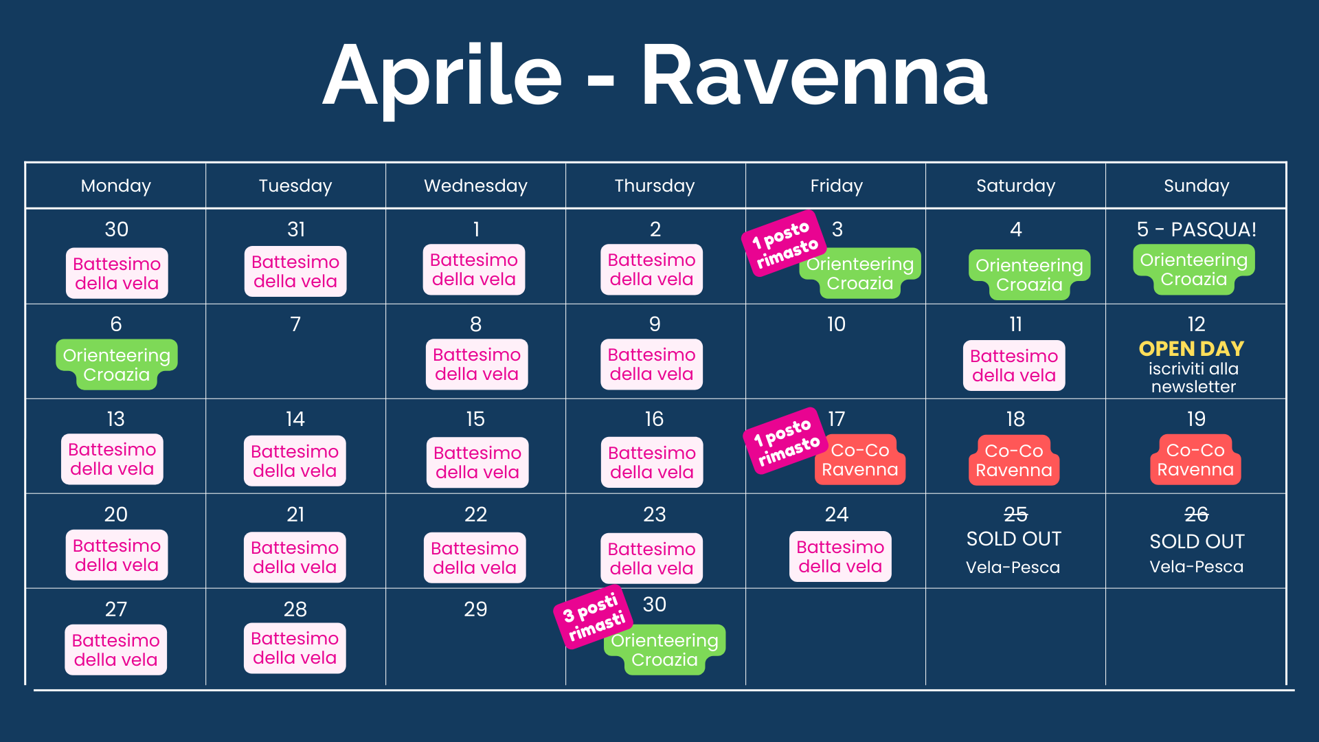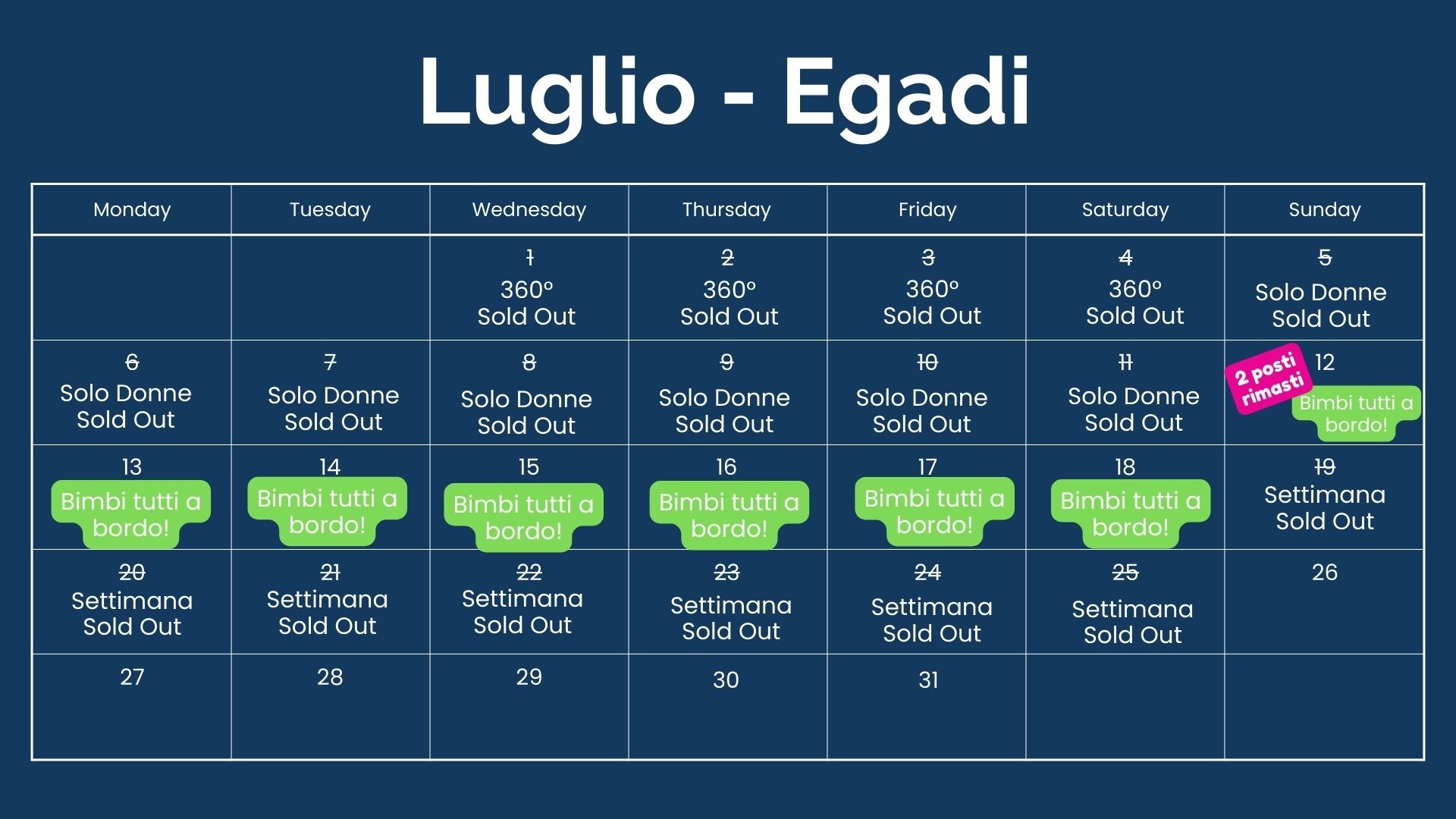 Nelle date che hai a disposizione c'è un'iniziativa che non fa per te? Scrivici o chiama e troveremo la soluzione più adatta a te!