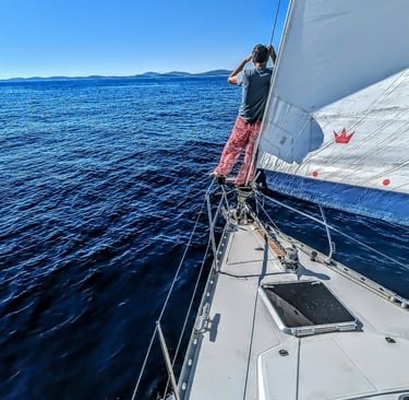 Cena e partenza verso l'Istria: navigazione stimata notturna a vela/motore con turni prestabiliti.